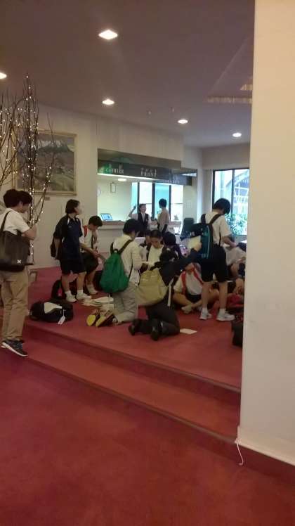 からまつ荘に到着しました。 全員元気です。 班長に指導している様子です。