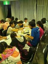 漆器の絵付け体験を頑張っています。