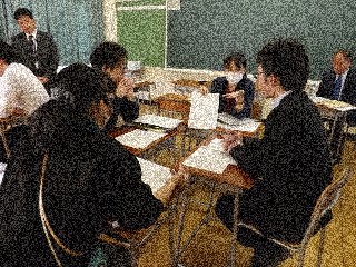 5時間目は各クラスで道徳の授業を実施しました。普段はなかなか他の先生の授業実践や工夫について知る時間を作りにくい先生も、他の先生の授業を観察して参考にしようとメモをとる様子が見られました。生徒下校後には、集合形式で授業者と参観者で意見交換し、講師の先生に講演いただきました。道徳授業は、教員が内容項目をよく理解して何を育てるのか、気づきや発見につながる発問をどう準備するのかが大切であること等をお話いただきました。また、例となる題材をもとに、実際に内容項目にどのように落とし込んで考えていけばよいのか、意見交換を交えながら実践的に解説いただきました。道徳を通じた六中生徒の成長に向け、思いを新たにする機会となりました。