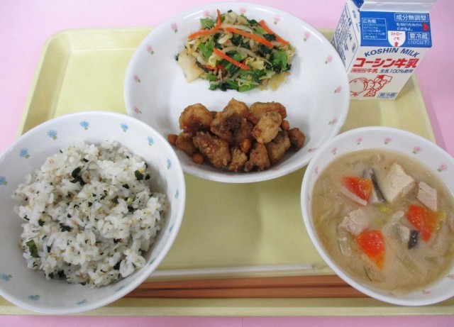 1月24日~30日は「全国学校給食週間」です。全国学校給食週間は昭和25年度から始まった取り組みで、毎年、学校給食への理解や関心を深めることを目的に実施されます。学校給食は、もともと貧しい子どもたちを飢えから救い、栄養状態を改善させるためのものでしたが、現在では役割が大きく変わり、子どもたちが望ましい食習慣や食に関する正しい知識、実践する力を身につけるための重要な役割を担っています。