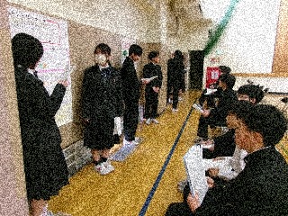 今日の発表に使用したポスターは、渡り廊下に掲示しております。学校公開の際に、生徒の力作をご覧ください。