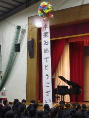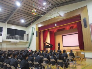 3月13日(金)5校時に「3年生を送る会」を行いました。吹奏楽部が演奏する中入場、後輩からのビデオメッセージ、1,2年生からの贈る言葉、3年生からのお礼の言葉に歌を交えながら会は進んでいきました。くす玉が割れないアクシデントもあり、3年生の手を借りて割ることができました。様子を見ていると、割れなかったくす玉も3年生の結束の強さを表していたのかと感じ、最後に自分たちの手で割ったことも積極的な3年生の姿勢を表していたかのようでした。全体を通してみんなの思い出に残る満足度の高い、良い会だったと感じました。