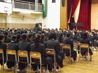 4月8日(水)2時間目と3時間目に新入生歓迎会を行いました。学校紹介のビデオで楽しく学校の様子や生活のきまりを視聴した後、生徒会や学級委員、生活委員などの各専門委員会の紹介をプレゼンテーション形式で各委員から紹介しました。また、後半のオリエンテーションでは、各部活動が作成した動画で部活動の様子が流れ、その後部活動のきまりについての説明がありました。1年生は各委員の問いかけに元気よく返事をし、1年生代表の挨拶も立派にこなしていて、ごれからの学校生活に積極的な様子が感じられ頼もしく思いました。