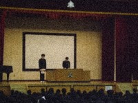この「日本のしらべ」は、日本の伝統的な音楽や舞踊に直接触れ、邦楽に対する総合的な理解と幅広い鑑賞能力を身に付けることを目的として行われています。毎年区内中学校11校で実施され、3年に一度本校で行われます。従って、3年間のうち必ず一度は体験できる行事です。