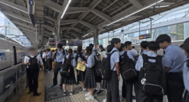 東京駅の集合場所に参加予定の生徒が予定時刻前に全員集合できました。出発式も少し早めて今新幹線に乗車しました。