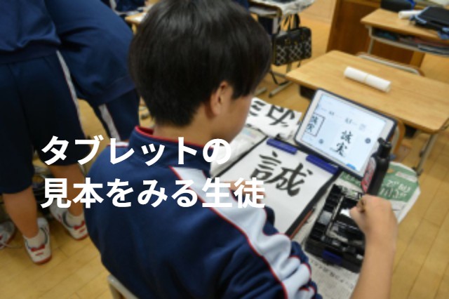 一人一人がお手本の「書」を見ながら丁寧に筆で文字を書いている姿が見られました。