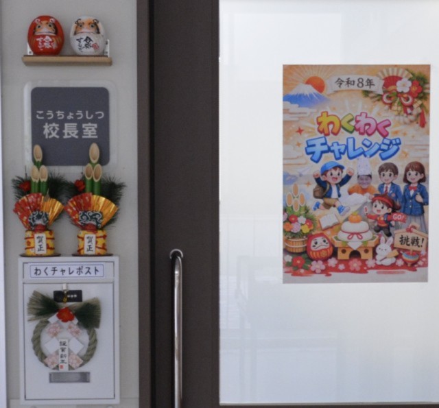 校長室は新年のお飾り(用務主事さんのお手製です)で賑わっています。