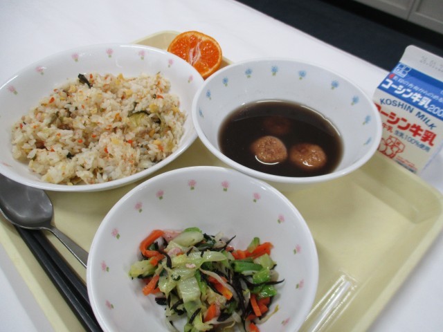 白玉汁粉の白玉も給食室の手作りです。茹であがった白玉にきなこと三温糖をまぶしています。