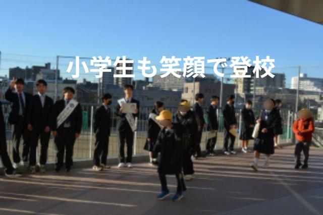 生徒会主催の小学生とのふれあいを目的とした「ふれあいあいさつ運動」が今週、実施されています。