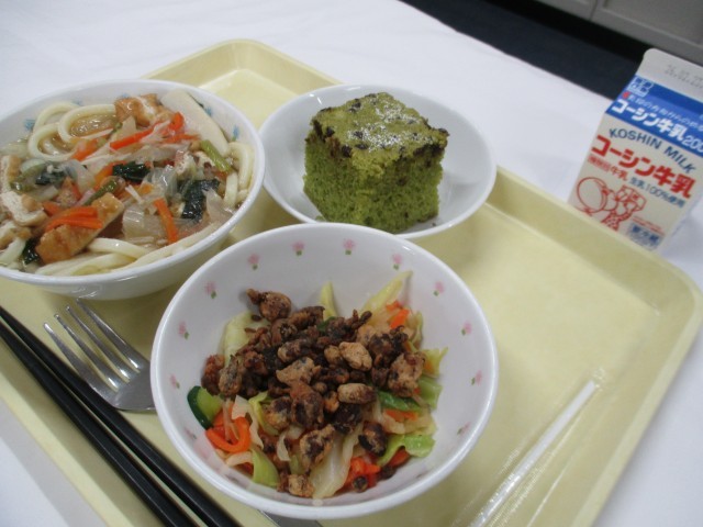 デザートのケーキはバレンタインデーにちなんで チョコレートが入っています。