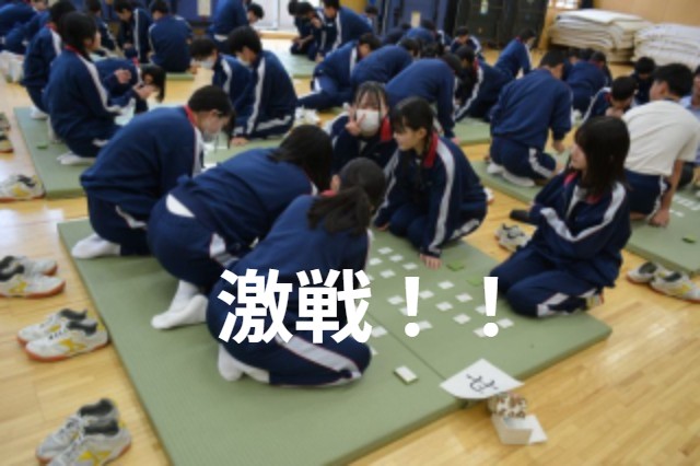 三年生の国語の授業と文化的特別活動をミックスした「百人一首大会」の様子です。