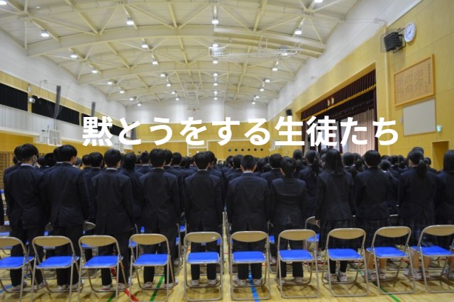 東日本大震災十五年目となる3月11日、哀悼の意を表するために屋内運動場で全員で黙とうをしました。