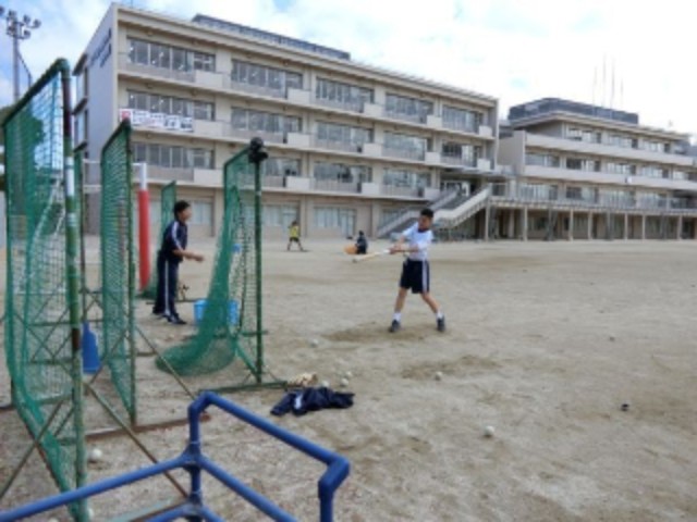 校庭では野球部が朝練習をしていて小学生はその様子を眺めながら登校しているので区内では唯一の学校と言えます。