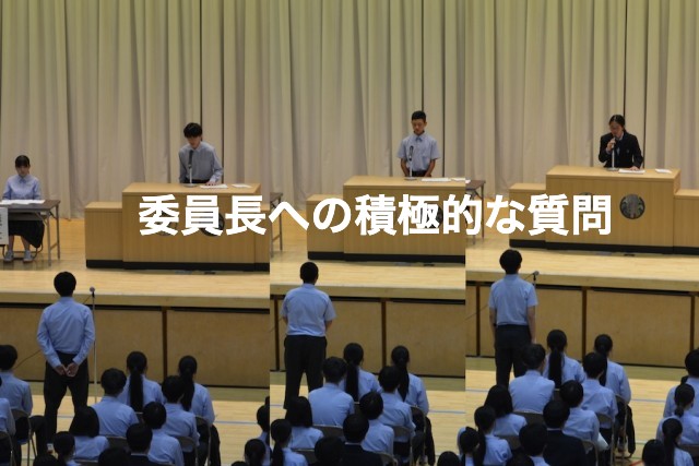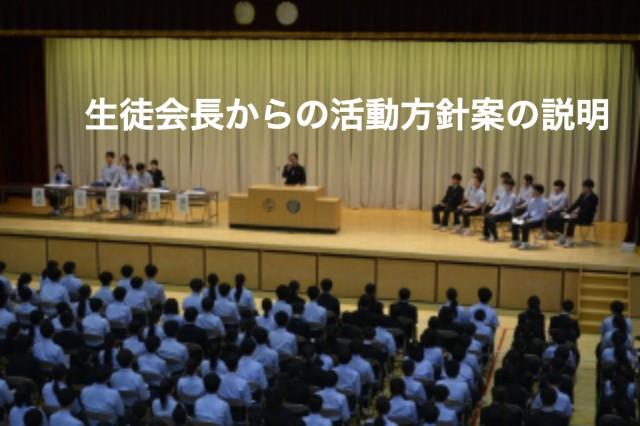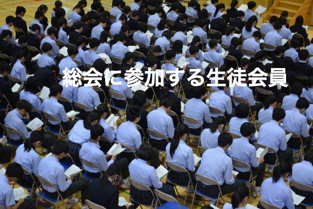 全校生徒が集まる総会の中で本部役員、そして各委員長からの活動方針案が示され、可決されました。