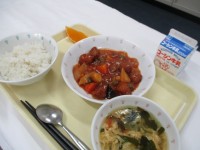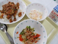 今日は、昔懐かしいメニュー「カレーライス」です。学校のカレールーは、手作りです。油・バター・小麦粉・カレー粉で1時間かけて、ブラウンルーを作りました。また、玉葱は2時間炒め、甘さをだしました。今日は、全体的に食べ残しが少なかったです。今日も嬉しいことに「食べ残し0」のクラスが3クラスありました。