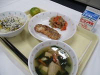 チキンライスに薄焼き卵をのせて、ケチャップソースをかけます。