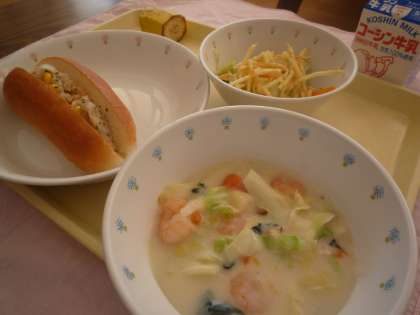 今日のサラダは じゃが芋を細く切ってカリカリになるまで 油で揚げたものをトッピングしました。ドレッシングには はちみつが入っています。辛子も隠し味として加えています。