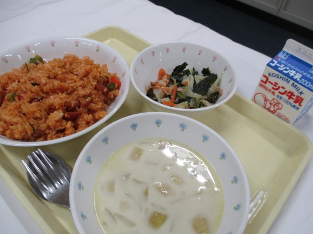 旅館での最後の食事です。朝食でもたくさんお替りをする生徒がいました。ご飯だけではなく味噌汁も人気でした。旅館への感謝の言葉も忘れませんでした。