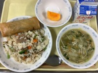 キャロットコーンライス・ケデュヌ風シチュー・アロコサラダ・牛乳