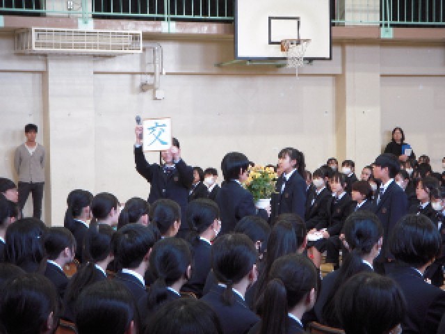 4月8日 対面式、1年生オリエンテーションがありました。2年3年生との初めての顔合わせです。少し緊張した面持ちの1年生でしたが、上級生からの漢字のプレゼント、歌声のプレゼントがありました。上級生が歌う「南風」は新入生の皆さんにどのように聴こえたでしょうか。これから共にすばらしい学校生活を作り上げていきましょう。