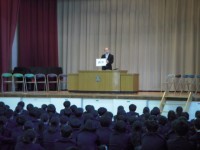 宿舎に到着。夕食も食べました。扇子の絵図けを体験学習に選んだ班の生徒が楽しそうに取り組んでいます。体験をしていない生徒は入浴時間です。20時05分