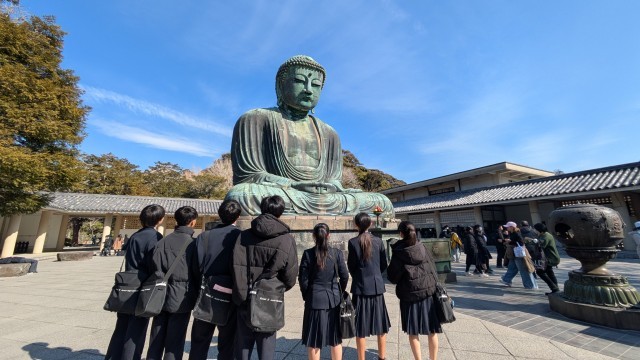高徳院(鎌倉大仏)にて。快晴の中、鎌倉を歩いて巡り、とても気持ちがよいです。