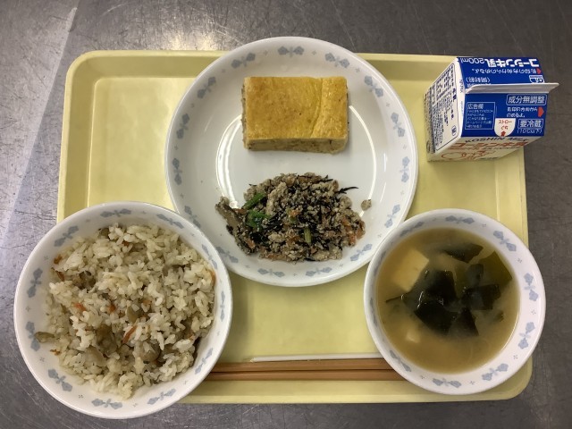 学校給食週間4日目です。今日は「東京都の郷土料理」がテーマの献立です。深川めしは、東京都江東区の郷土料理です。江戸時代に江東区深川の漁師が、仕事の合間にアサリを味噌で煮てご飯にかけたのが始まりと言われています💡その後、大工などの職人向けの弁当として、現在の炊き込みご飯の形も生まれました。給食では、炊き込みバージョンの深川めしを作りました。アサリの旨味を感じながらいただきましょう。