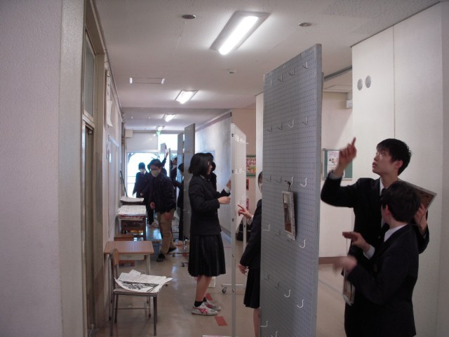 3月5日(木)明日からの学芸発表会に向けて展示の準備が始まりました。写真は準備が始まったころの状況です。それぞれの生徒が担当場所で生き生きと活動していました。夕方にはすべて完成し、あとは鑑賞日を待つだけです。完成した姿はぜひ当日ご覧ください。(3枚目)