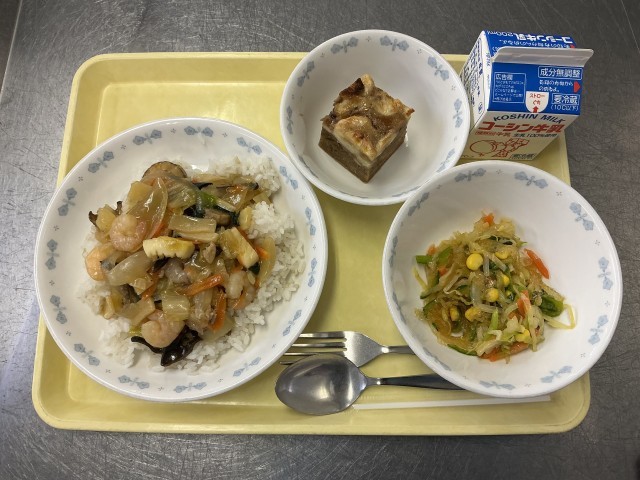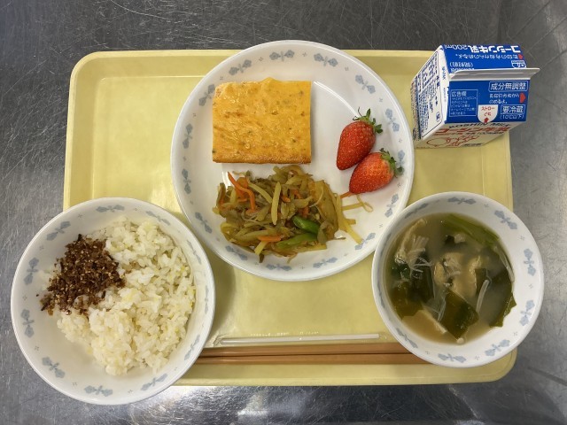 今日は「学芸発表会応援メニュー」です。午前の発表お疲れ様でした。給食をしっかり食べて2日目に向けて体力を回復させましょう!