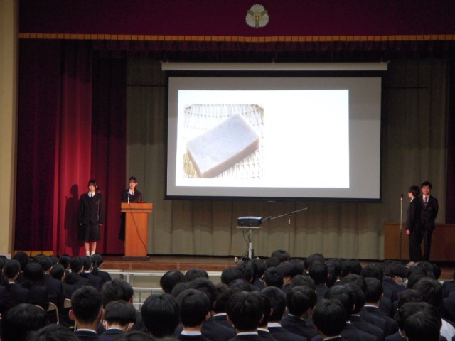 学芸発表会(生徒鑑賞日)の様子です。英語で話すだけでなく、映像にも工夫が見え、話している内容がよく伝わってきました。