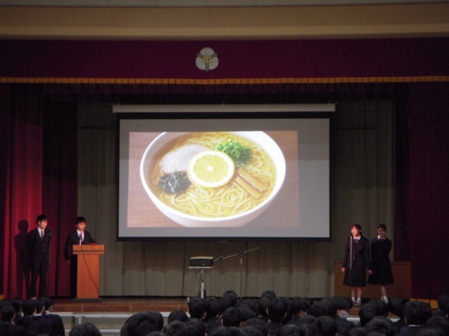 学芸発表会(生徒鑑賞日)の様子です。修学旅行のまとめ発表。手の込んだ演出で1,2年生は修学旅行への期待がふくらんだことでしょう。