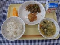 今日のバーガーにはホキという白身魚を使っています。癖がなく身が軟らかいため、食べやすい反面揚げるときに崩れやすいのですが、丁寧に揚げてくださり、挟んで蒸す作業も見事なチームワークで丁寧に作ってくださいました。夏の給食の定番である冷凍みかんは本校では今年最後の提供でした。いつもよりも小ぶりでしたが、最後の登場とわかると普段より多くの生徒が味わってくれたようでした。