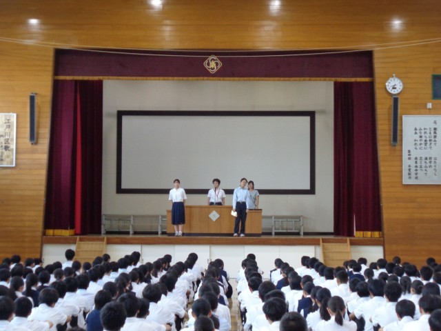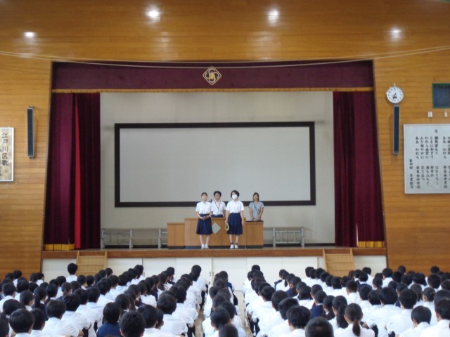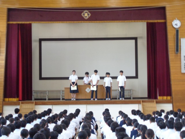 生徒会役員の生徒の認証、各部活動の表彰がありました。