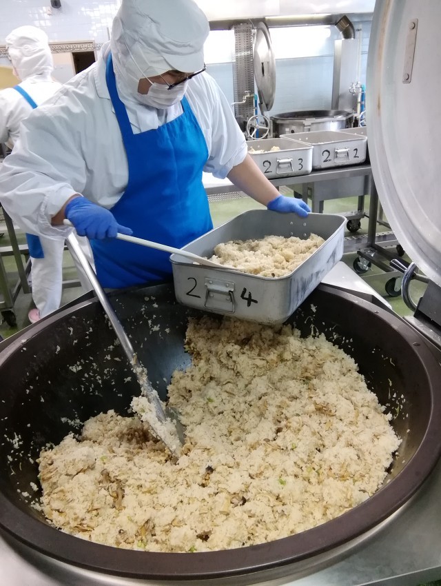 今日は秋の味覚のひとつ「きのこ」を使ったごはんです。今回はえのきだけとしめじを使っています。きのこ類が苦手な人も多いかと心配していましたが、思っているよりもしっかり食べてくれていました。