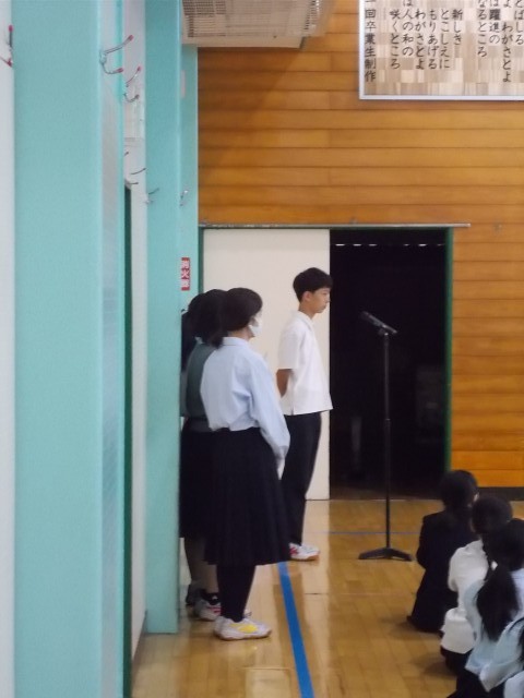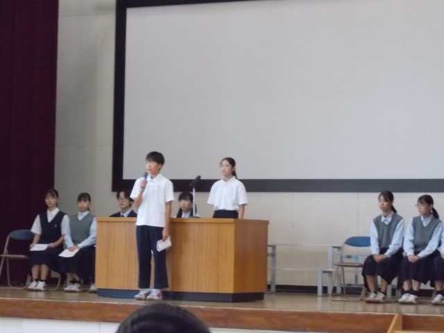 本日、生徒朝礼が行われ後期委員会のメンバーが認証されました。
