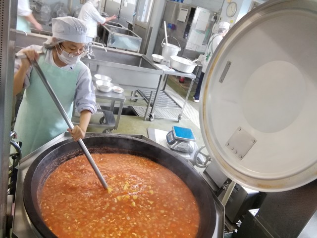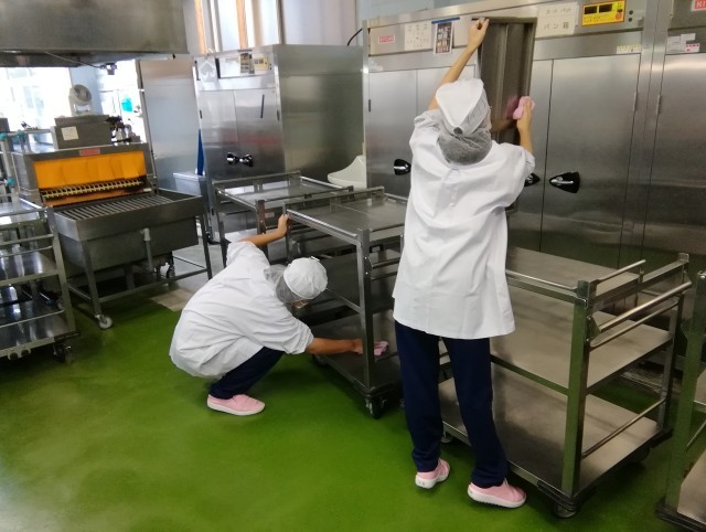 職場体験の2年生には食器やワゴンの準備、回転釜での調理作業等を体験してもらいました。