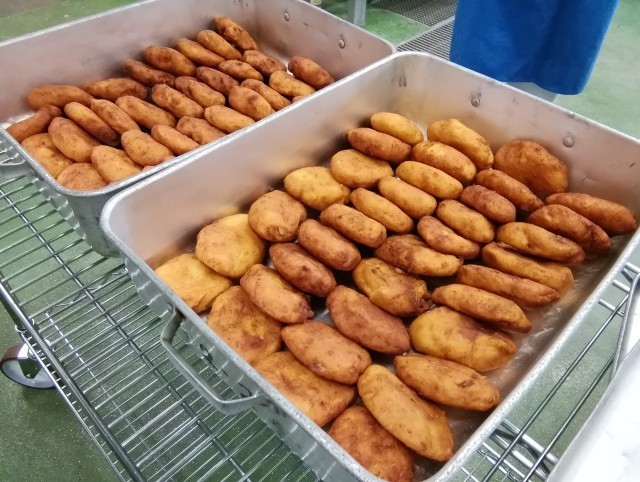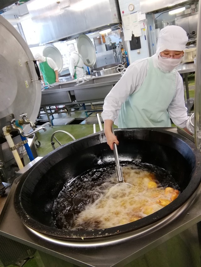 本日は食品ロス削減の日です。そのことにちなみ、出汁を取り終わったうす削り節を使ったふりかけ、大豆から豆乳を絞った時に残るおからを使った埼玉県の郷土料理である「ゼリーフライ」を作りました。給食室では日頃から食品ロスを少なくするような調理を心がけてもらっています。生徒のみなさんにも小さな積み重ねとして、毎日の給食もおいしくしっかりと食べてもらえたらと思います。