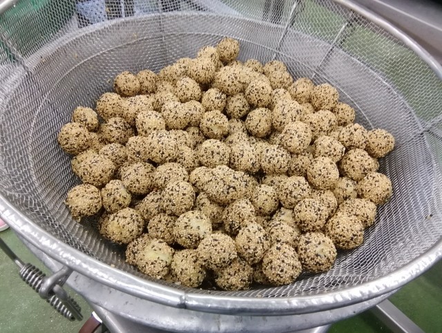 そして「さつま芋のごま団子」はさつま芋を蒸してつぶし、丸めてごまをつけて油で揚げています。ごまの香ばしい香りも加わり、生徒もよく食べてくれていました。