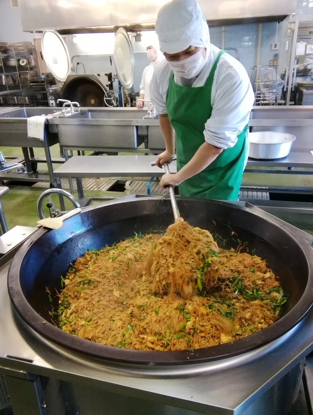 チャプチェ丼は豚肉、6種類の野菜、春雨を使い、甘辛い味付けで仕上げてもらいました。具だくさんでしたが、よく食べてくれていました。