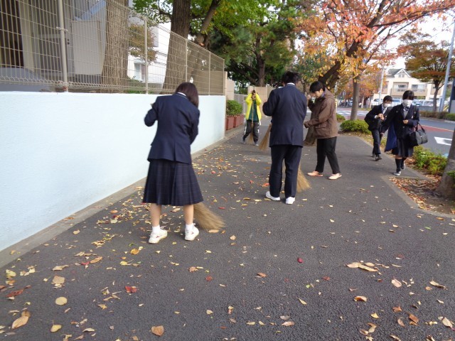 毎日掃いても、次の日の朝には元通りになるくらいたくさんの落ち葉があり、生徒は一生懸命取り組んでいます。