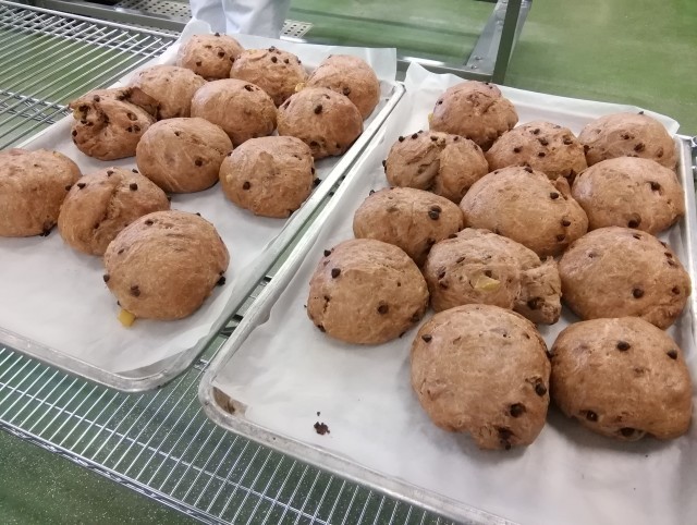 今日は月に一度の手作りパンの日です。今日は旬のりんごを使った「アップルココアパン」です。ココア生地にりんごとチョコチップ、香りづけのシナモンがよく合います。一段と寒くなってきたので発酵が心配されましたが、生地はしっかりと膨らんで、美味しく焼き上がりました。