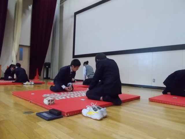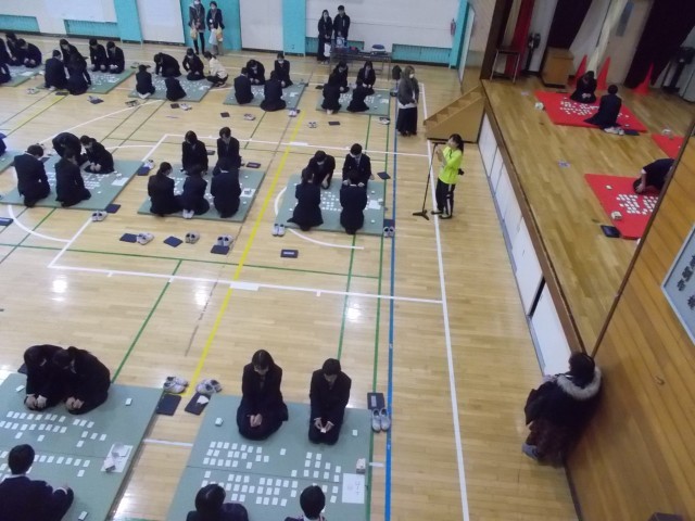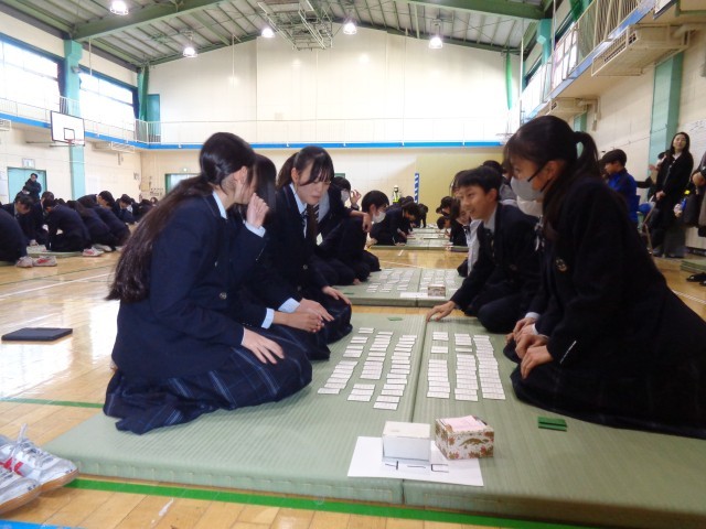 先週の1月16日(金)に1年生1・2時間目、2年生3・4時間目に百人一首大会が行われました。前日から実行委員の人たちが畳み出しをして当日を向かえました。どちらの学年もとても白熱していました。