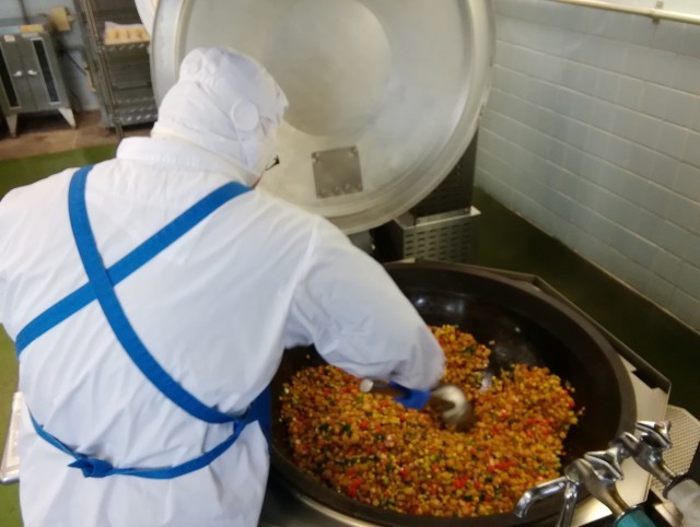今日は照り焼き風味の豆腐ハンバーグです。ハンバーグの材料をこねて、ひとつひとつ丁寧に成形してもらいました。手作りの照り焼きソースはごはんとの相性も良く、生徒のみなさんもよく食べてくれていました。
