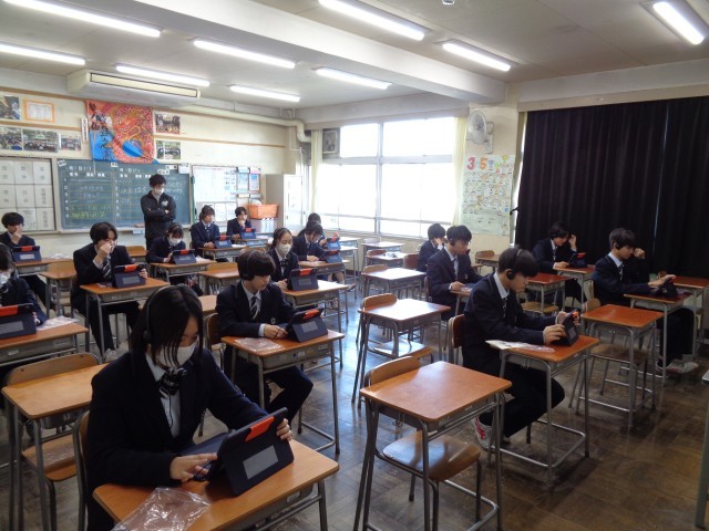 放課後に2年生は、来年度に実施する「全国学力・学習状況調査」の事前検証を行いました。