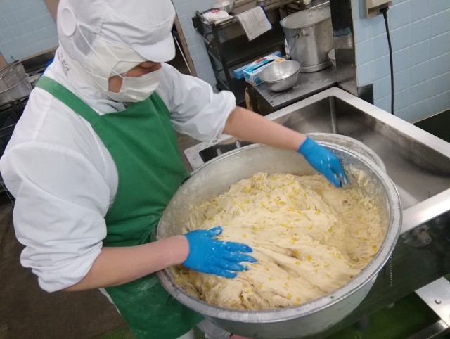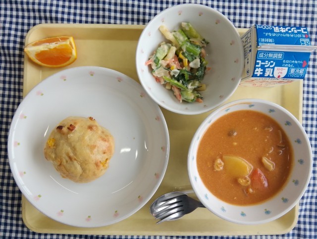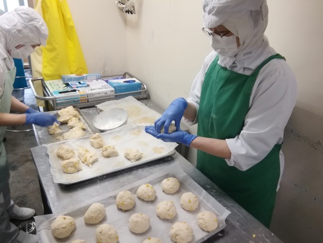 今日は今年度最後の手作りパンの日です。今回は生地にクリームコーンを練りこんだパンです。コーンの香りと優しい甘みのある味になりました。焼きたての味はこの時しか味わえません。生地から作ってくれている調理員さんに感謝して、これからも給食を食べてほしいと思います。