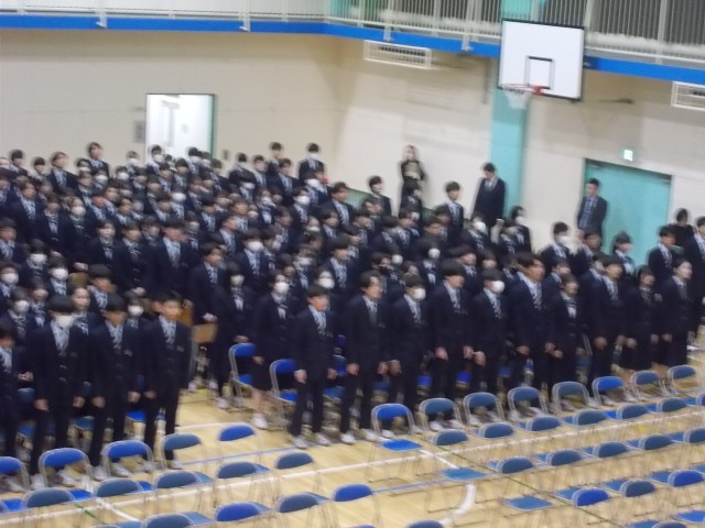 本日17日、卒業式予行が行われました。1・2年生は、本日の予行をもって卒業式の代わりとなりました(※生徒会、学級委員、生活委員の生徒は明後日の本番にも参席します)。予行後、日野校長先生から「3年生は、在校生の見本となる、よい予行でした。」とお話がありました。