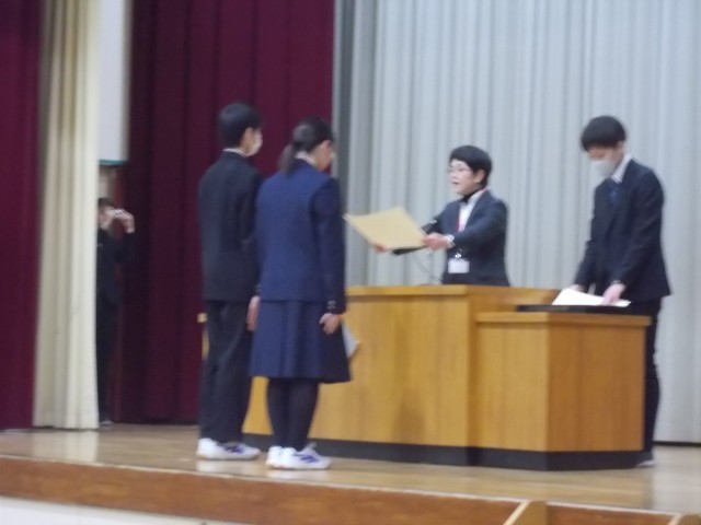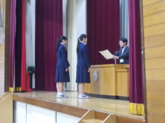 また、予行後には都展と書道の表彰と3年間を通しての各分野においての優良生徒の表彰が行われました。
