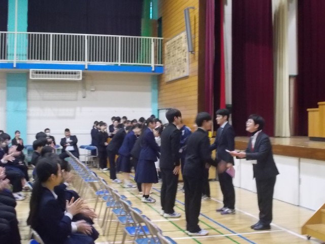 本日、予行後に3年生からお世話になった方々へサプライズのプレゼントが渡されました。