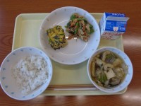 現在2年生は職場体験期間です。給食室にも来てもらっており、職場体験2日目の今日はみかんを切ったり、イカバーグの成形をしたり、きんぴらを炒めて配缶したりと調理を体験してもらいました。見たこともない大きさの釜や器具がある中で黙々と丁寧に作ってくれていました。今日はイカバーグときんぴらが特に人気で、どのクラスもよく食べられていました。