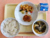 ☆1月16日(金)の献立○ごはん○カレーコロッケ○生揚げのみそ煮○わかめと卵のス...